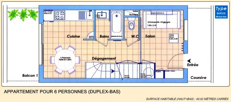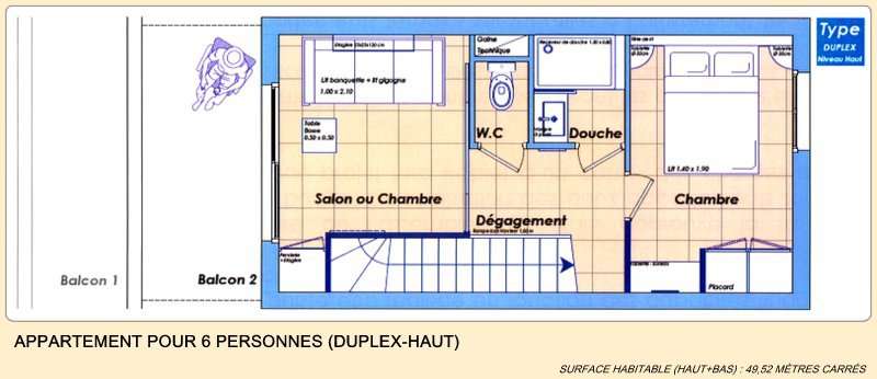 Magnifique duplex de 527 p2 (50 m2 ) situé au 1er étage (vous devrez monter environ 10 marches pour vous rendre au logement), sur 2 étages (1er étage : Salon/Chambre, Cuisine, Salle de bain, Terrasse et le 2e étage : Chambre 2, Chambre 3, salle de bain, balcon) avec une belle vue, 1 terrasse et 1 balcon.